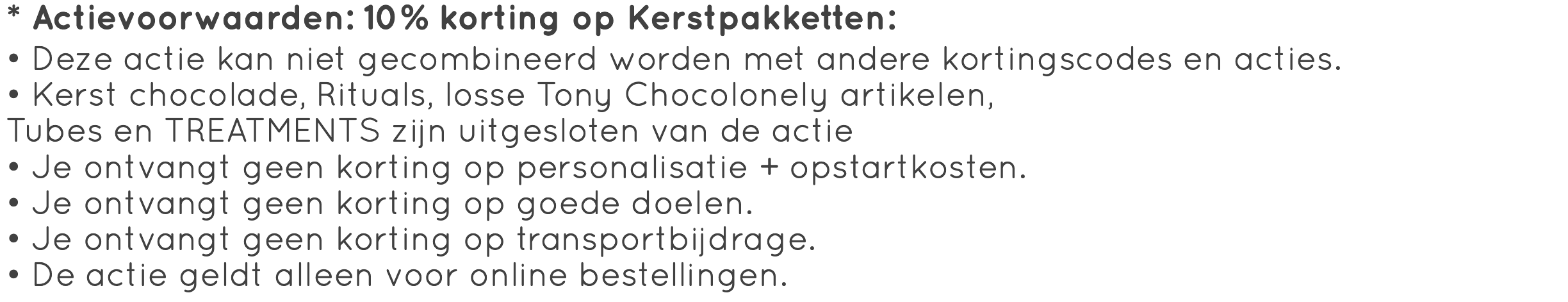 Bestel dan nu bij de enige echte specialist van verrassingspakketten! Groothandel en leverancier Tezet drukt & print in haar eigen studio je gedicht, logo en tekst op het gekozen verrassingspakket. Wij helpen graag mee met het vinden naar een originele en uniek geschenk. Een persoonlijke boodschap op het gekozen pakket zorgt zorgt voor een onuitwisbare indruk! (logoopdruk op chocolade is uitgesloten)